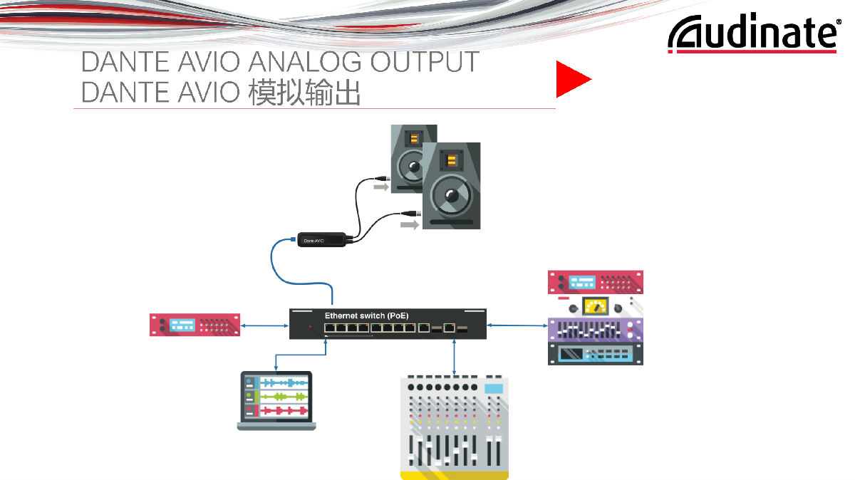 Dante网络转模拟线路输出