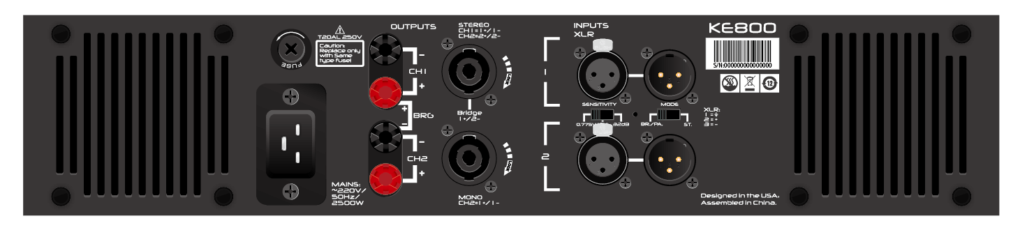 8Ω立体声: 850Wx2
