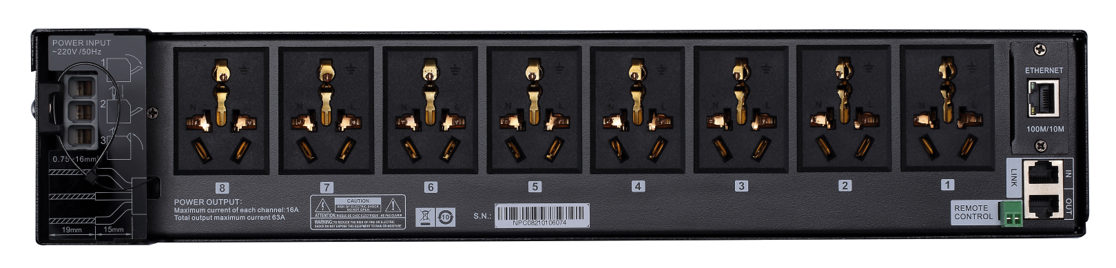 单路输出额定电流 16A,总输出电流不超过额定输入电流